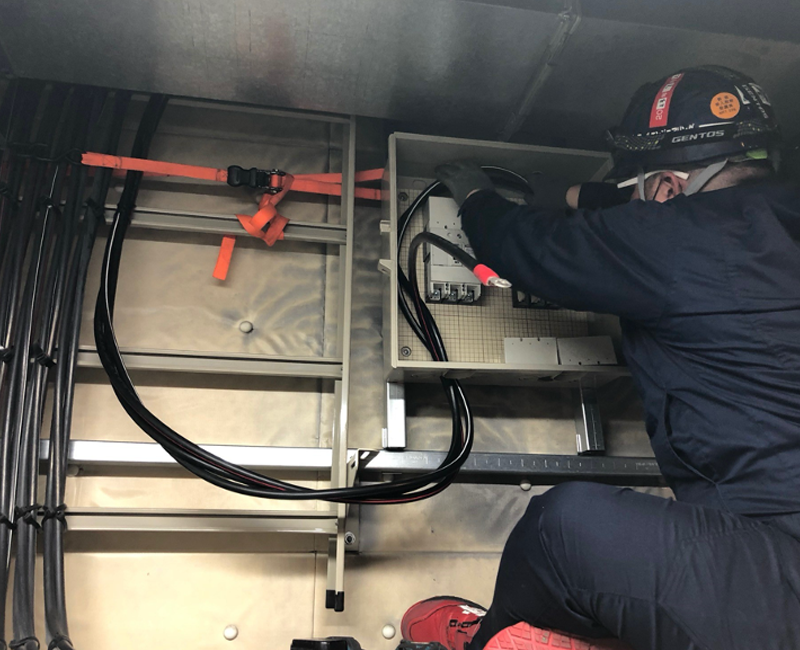 蓄電池配線処理作業の様子